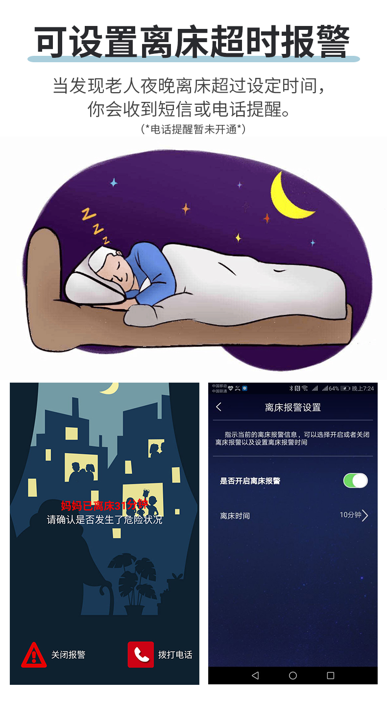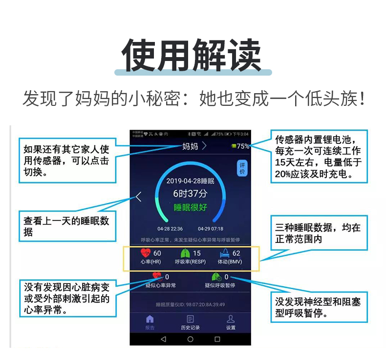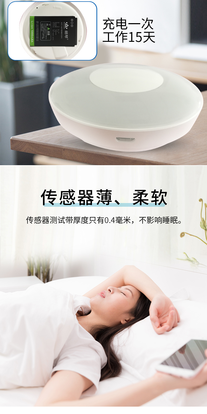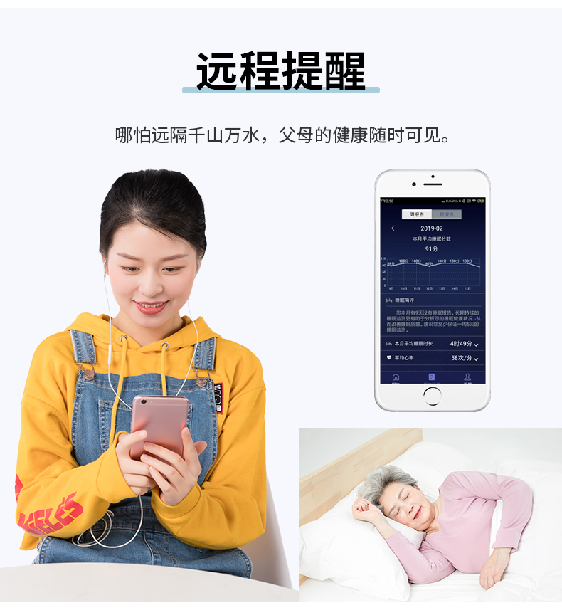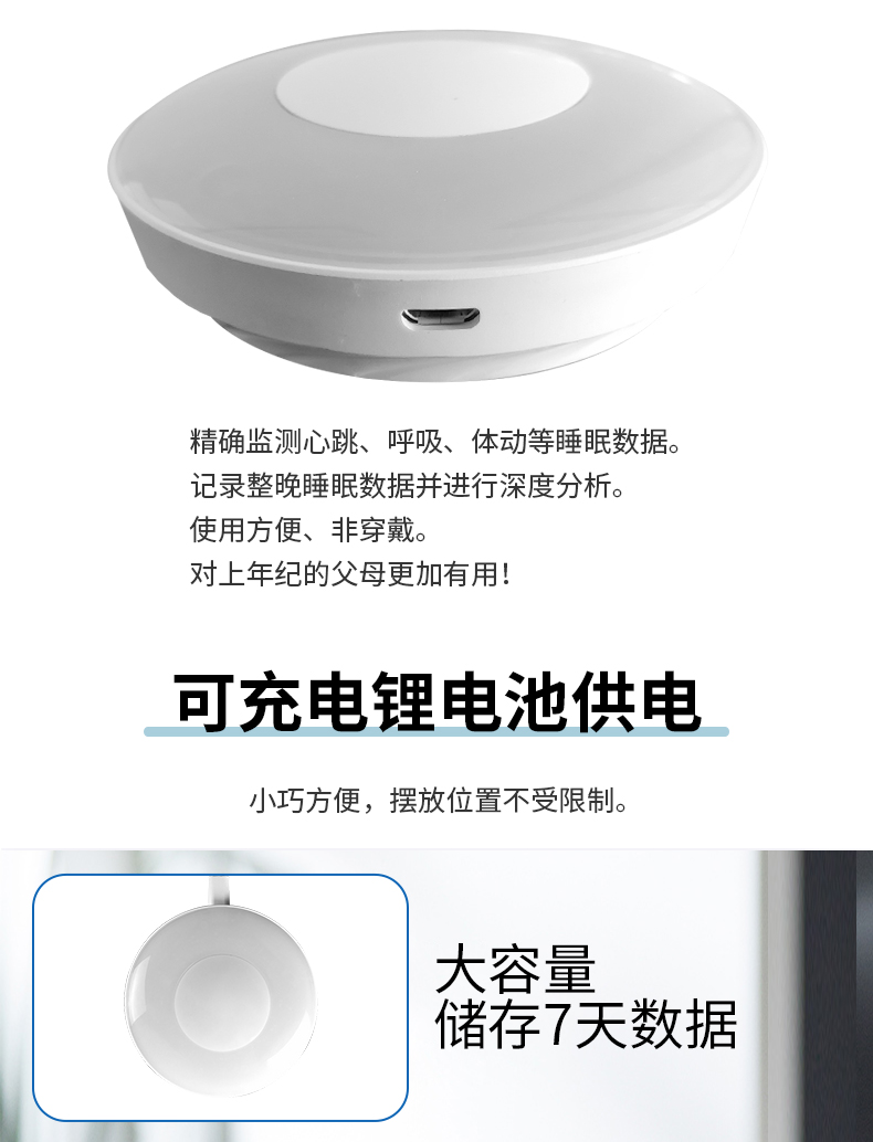 監(jiān)測(cè)睡眠過程中的心率、呼吸率、體動(dòng)等數(shù)據(jù),離床監(jiān)測(cè)器,非穿戴,舒適睡眠無感監(jiān)測(cè)
