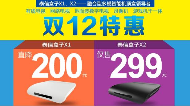 總之,雙十二,不要再錯過2014年最后一個狂歡節。泰信盒子此次也給予了最大的優惠。相信擁有多年技術積淀的泰信盒子系列產品將帶給您不一樣的電視體驗,而且有一天它有可能成為您家中的POS機。抓緊行動吧!泰信官方商城和淘寶官方企業點等著您的到來!