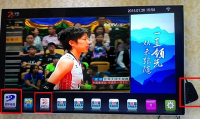 首先,接通電源開機,界面別具一格。設置網(wǎng)絡完畢后直接進入到主界面,有線電視和網(wǎng)絡電視應用圖標一目了然,顯要位置主要是有線電視預覽畫面。界面左上角及下方快捷應用中有華數(shù)TV的標志。廣電有線電視和互聯(lián)網(wǎng)電視牌照方正版視頻內(nèi)容的雙授權(quán),增加了泰信盒子制勝網(wǎng)絡盒子的砝碼。
