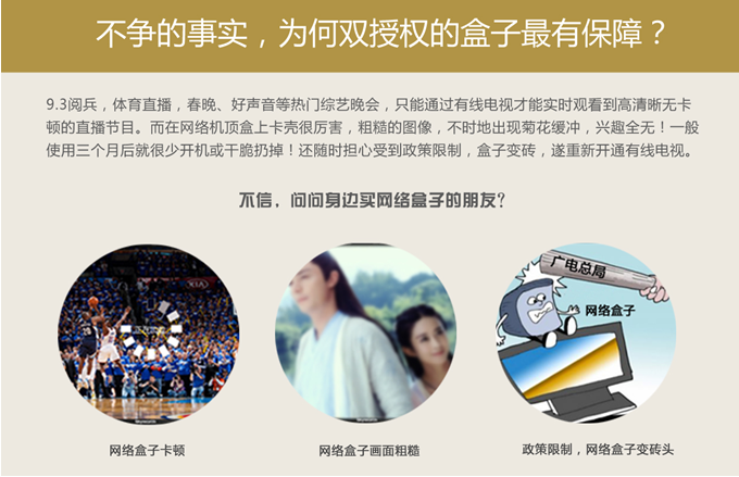 曾經(jīng)選擇網(wǎng)絡機頂盒的用戶醒轉(zhuǎn)之后,迫切希望擁有一臺高清不卡且能看實時的高清有線電視直播,又能看海量網(wǎng)絡視頻的融合型機頂盒。這樣一切問題將迎刃而解。