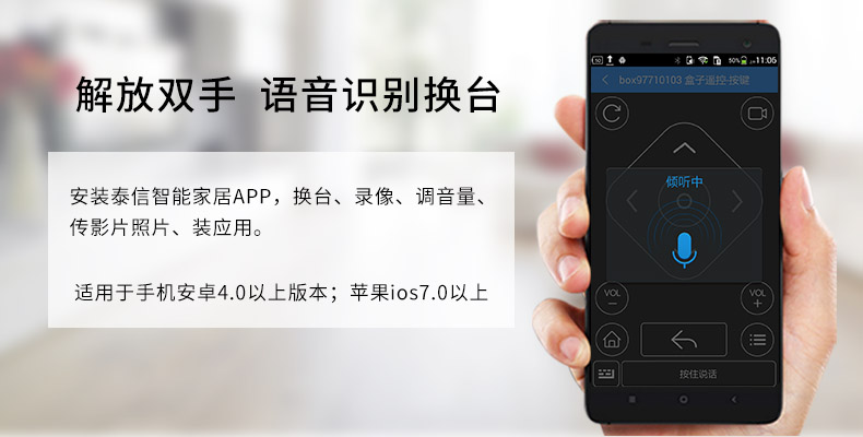 泰信率先引領(lǐng)有線電視進(jìn)入智能四核時(shí)代,是廣電有線電視+網(wǎng)絡(luò)電視領(lǐng)軍品牌!T6A搭載自主研發(fā)的直播電視操作系統(tǒng)DTVOS,1G內(nèi)存+8G閃存,支持4k超高清、H.265、3D藍(lán)光,畫質(zhì)更清晰,操控更流暢!綠色節(jié)能設(shè)計(jì)。泰信20年技術(shù)積淀,值得信賴!泰信盒子變身智能家居控制中心,體驗(yàn)全新升級(jí)。