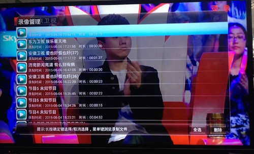首頁界面下方應(yīng)用快捷鍵的第二個圖標(biāo)為泰信錄像管理的入口,可對已錄制的節(jié)目進(jìn)行管理,如圖10