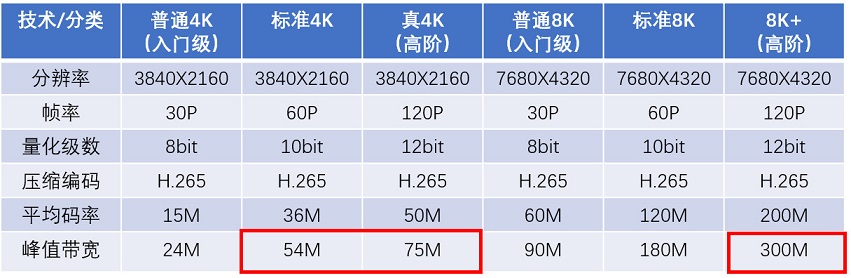 以下是傳輸各種超高清視頻信號所需的廣播帶寬。