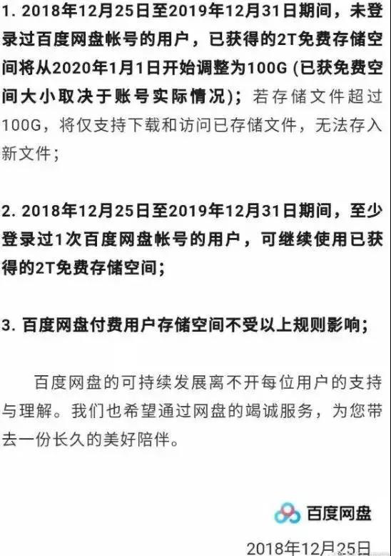 但不得不給你潑盆涼水:隨著網(wǎng)易云盤的關(guān)閉,免費的網(wǎng)盤就剩百度云盤一家了,而且從明年1月1號開始縮減免費使用空間。原因是網(wǎng)盤服務(wù)的成本很高,大量的服務(wù)器耗電、寬帶成本支出讓百度網(wǎng)盤每年虧損20億!