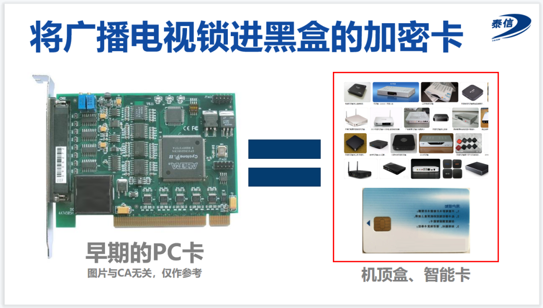 該卡上有一個(gè)存儲(chǔ)代碼的FLASH,包含了與智能卡或機(jī)頂盒中一樣的加密算法,一旦這個(gè)卡外泄,整個(gè)CA系統(tǒng)就會(huì)被輕易破解。