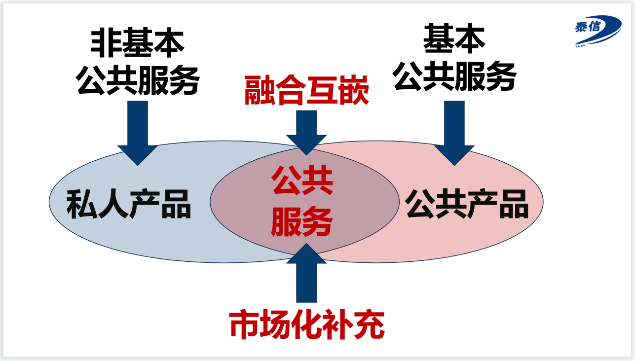公共服務(wù)要覆蓋收入差距如此懸殊的群體,需要將公共服務(wù)分為市場(chǎng)化提供的非基本公共服務(wù),也叫私人產(chǎn)品,以及覆蓋全民的基本公共服務(wù),也叫公共產(chǎn)品。二者融合互嵌,共同完成公共服務(wù)。